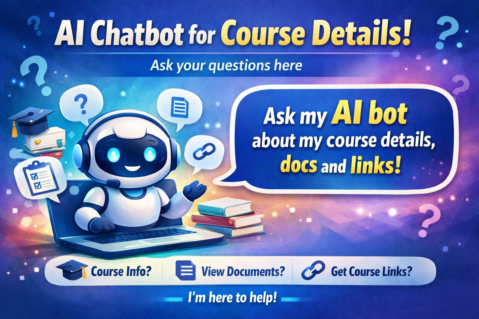 Ask our AI chatbot to get instant answers about course details, documents, and important links—all …